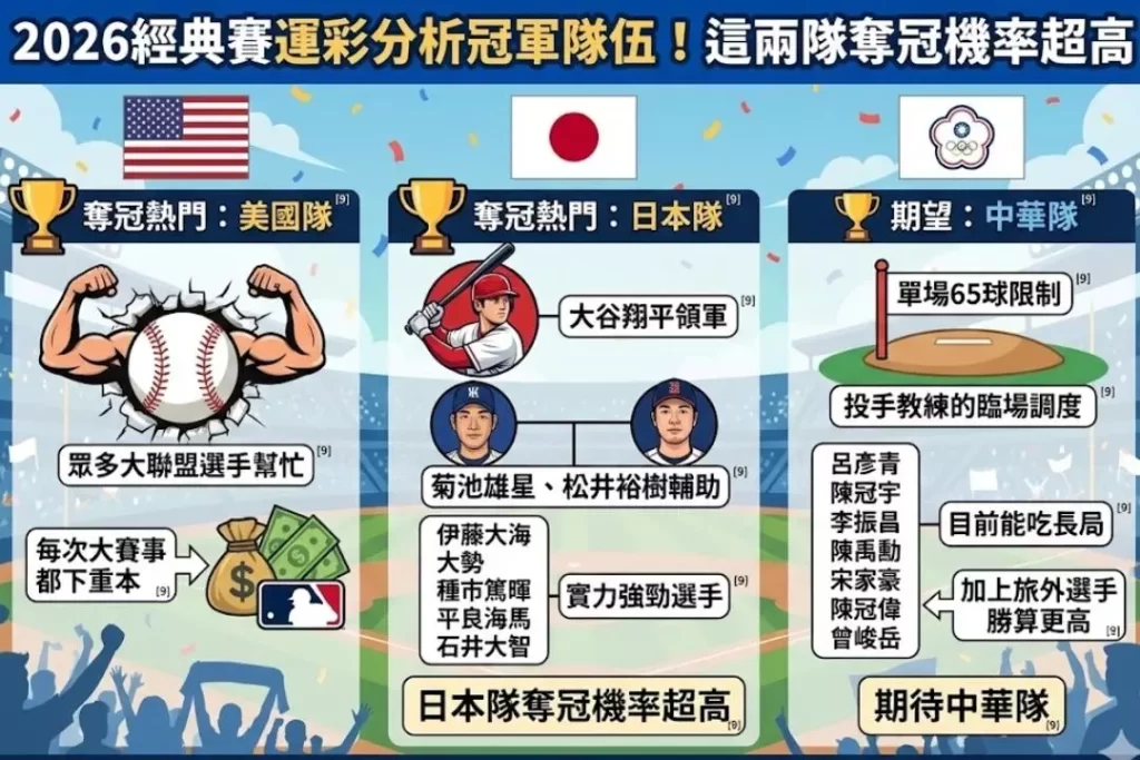 2026經典賽運彩分析冠軍隊伍!這兩隊奪冠機率超高